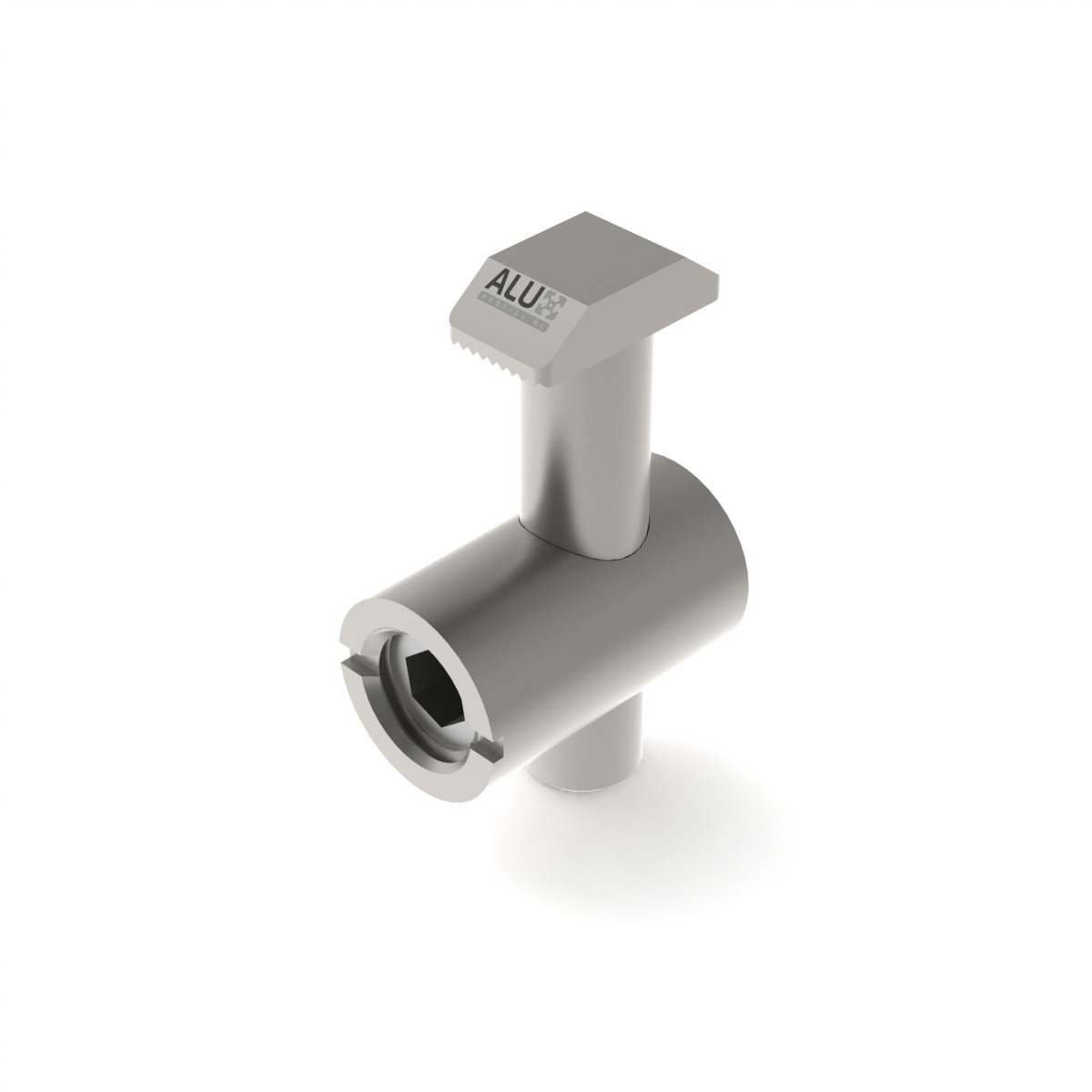 To connect two aluminiu profiles at right angles; a blind or through hole must be drilled through one of the profiles to provide access to the tigh-tening screw.