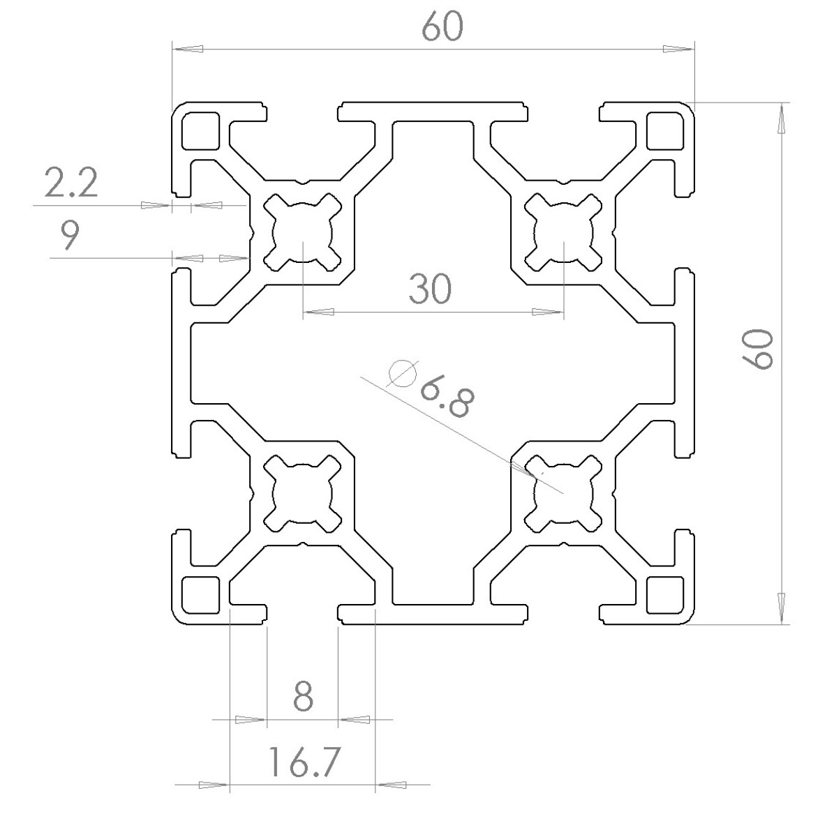 Alux Aluminium Slot Profile 6060 (8 mm T-slot, 8 slots) – Heavy-duty strength in 60×60 mm