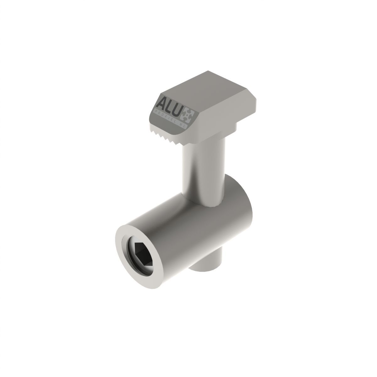 To connect two aluminiu profiles at right angles; a blind or through hole must be drilled through one of the profiles to provide access to the tigh-tening screw.