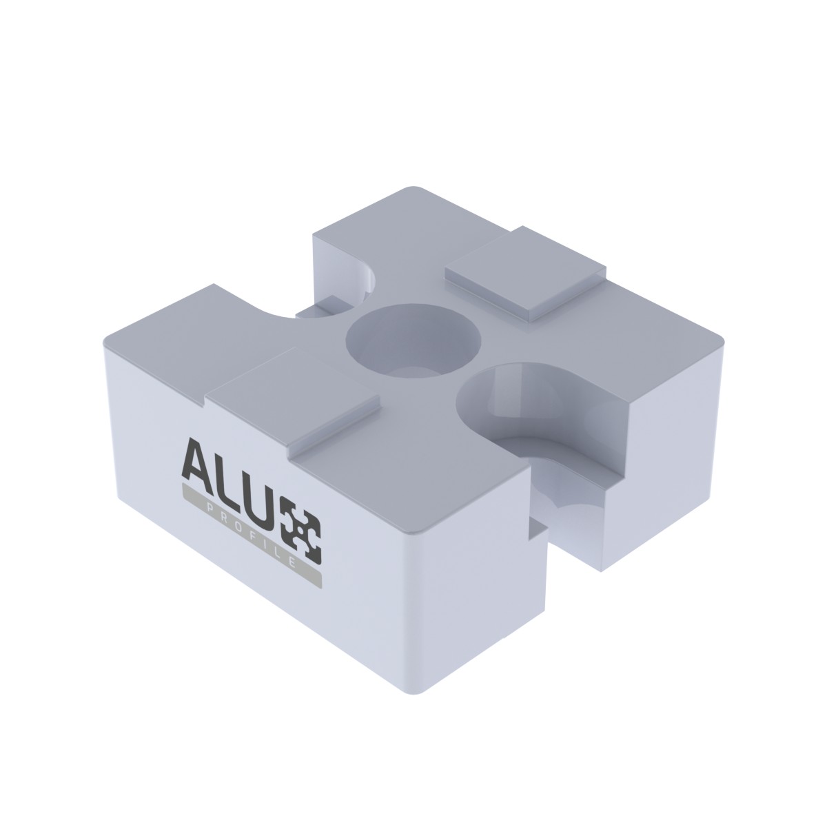 The connector is made from die-cast aluminium and features a 13 mm thick plate, providing a sturdy base for structural connections in modular aluminium profile systems. Die-cast aluminium offers a strong balance of strength, dimensional stability and cost-efficiency for both industrial builds and high-quality DIY projects.
