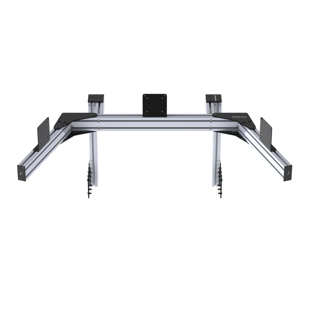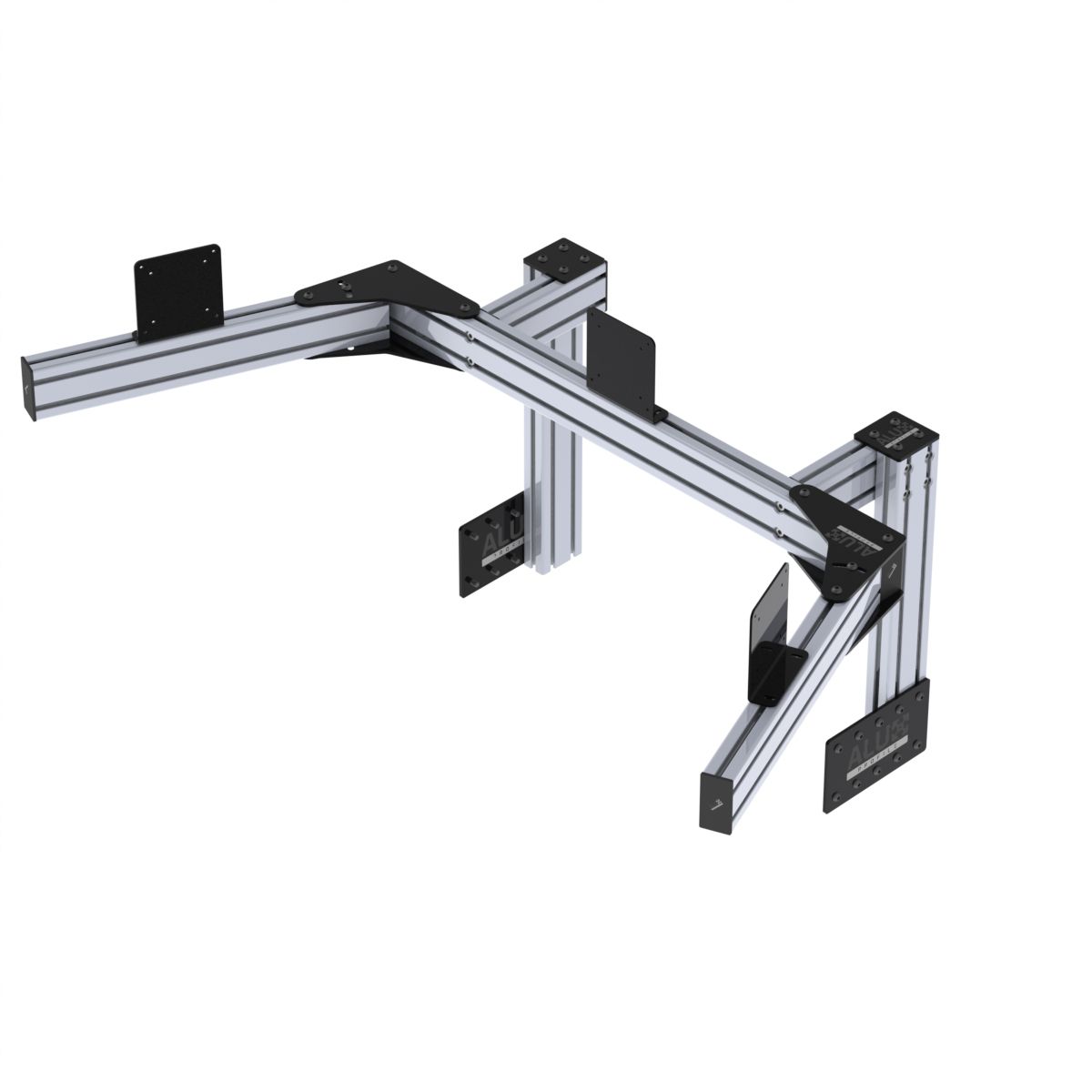 This triple monitor mount is extra sturdy and specially designed to mount up to 32" screens directly to the rig. The mount is made up of 4080 profiles and connected in critical places with bolts instead of connection corners, making it extra sturdy.