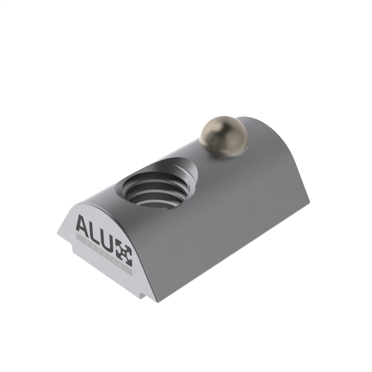 The Roll-in T-slot nut is our favorite T-slot nut. The nut can be easily rolled into the T-slot, and because it has a ball with a spring inside of the nut, it is fixated into place. The Roll-in T-slot nut will not fall down the T-slot. Furthermore, the Roll-in T-slit nut is self-aligning so the thread will always be in the middle of the T-slot. This Roll-in T-slot nut is compatible with the 45-series profile and has a M8 thread.