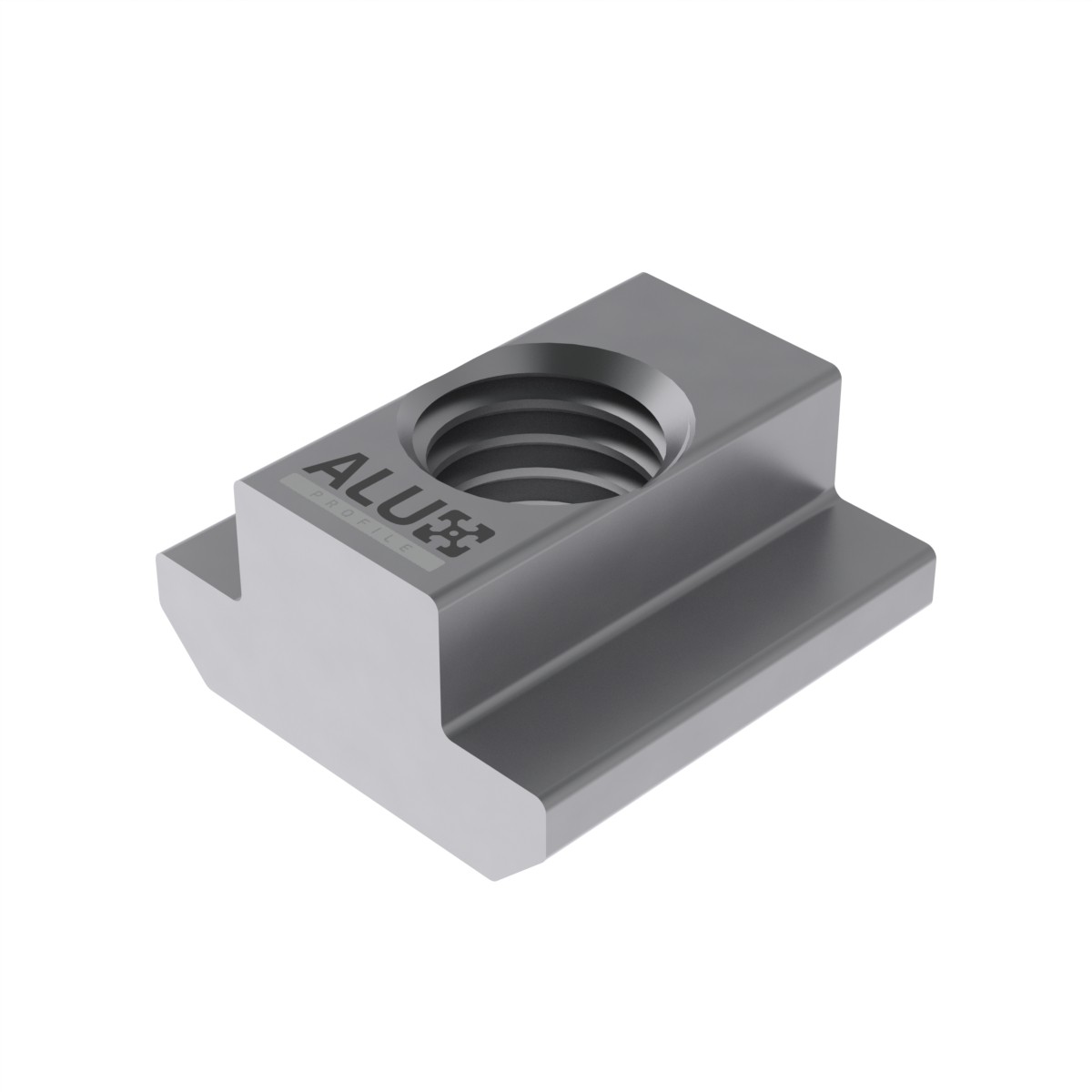 The slide-in T-slot nut is the more robust choice in T-slot nuts. The contact surface between the nut and the T-slot is the biggest of all variants. The slide-in nut has to be inserted into the T-slot from an open side of the profile, and it is not possible to insert the slide-in nut after the T-slot is closed in from both sides. The slide-in nut also doesn't have the same fixation like the roll-in nut and will slide along the length of the nut by itself. This slide-in nut is meant for the 45-series profiles and has a M10 thread.