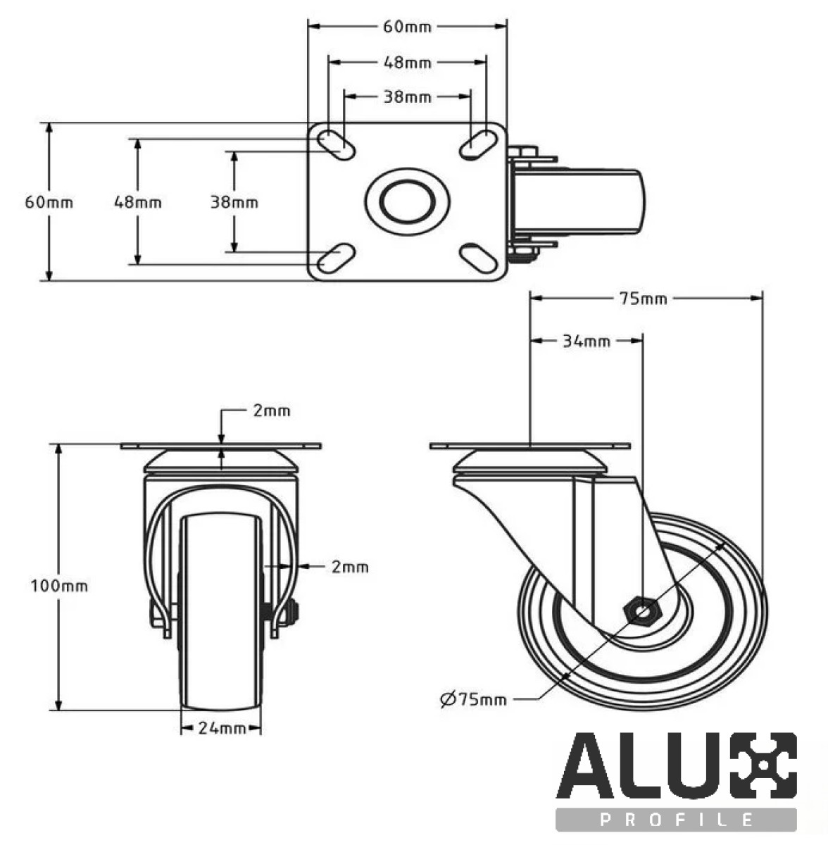 The 100 mm swivel caster wheel is a durable and versatile solution for mobile constructions, transport carts, and aluminium profile systems. Thanks to its 360° swivel design, it ensures smooth maneuverability and easy movement even in tight spaces.