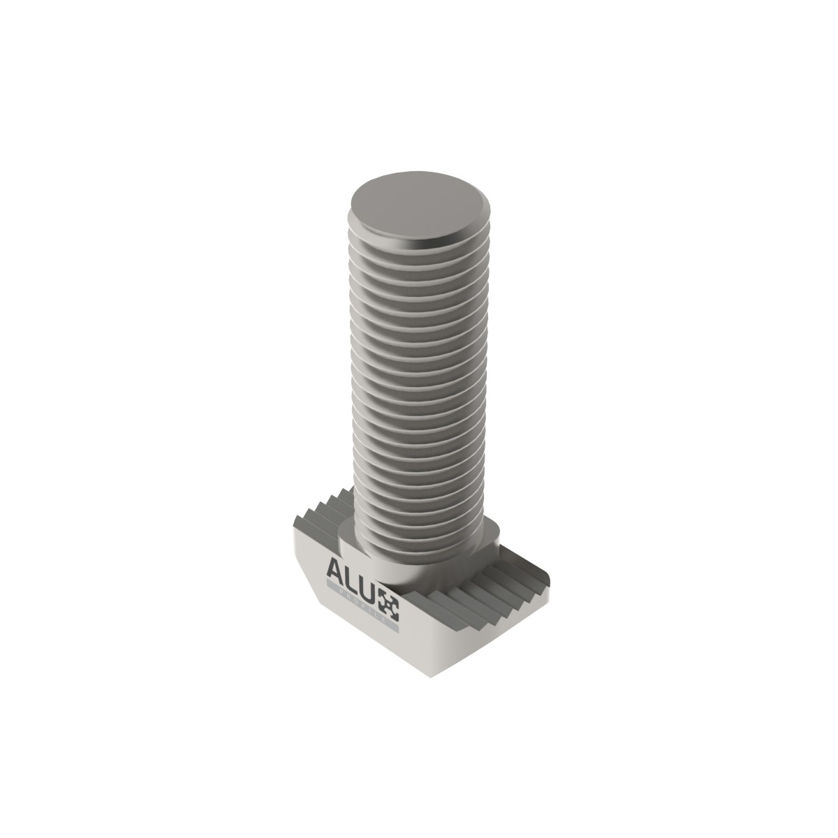 This Alux T-head bolt is meant for easy installation in the 30- and 40 series T-slot profiles. The T-bolt can be installed anywhere along the T-slot profile, by rotating the bolt it will lock into position. The bolt is of size M8 and has a thread length of 25mm. The tapered neck allows for simplified assembly because the bolt is self-aligning. The positioning groove on the end of the T-bolt visually indicates when it is properly positioned in the T-slot.