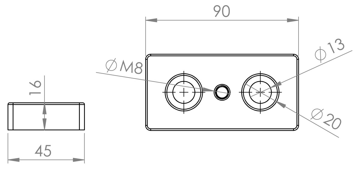 Transport and Base Plate 45x90 M8 for T-Slot Aluminium Profiles